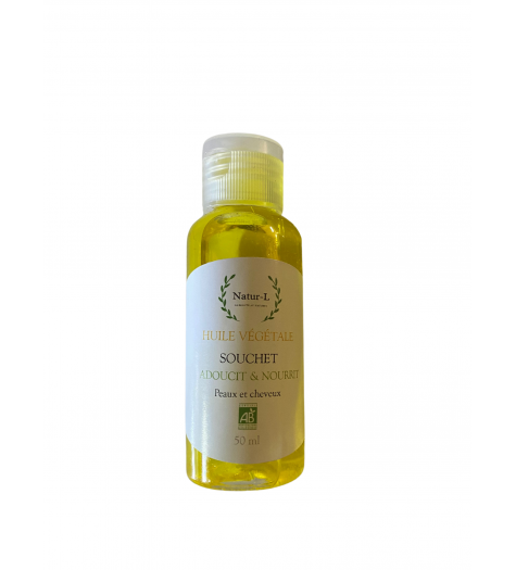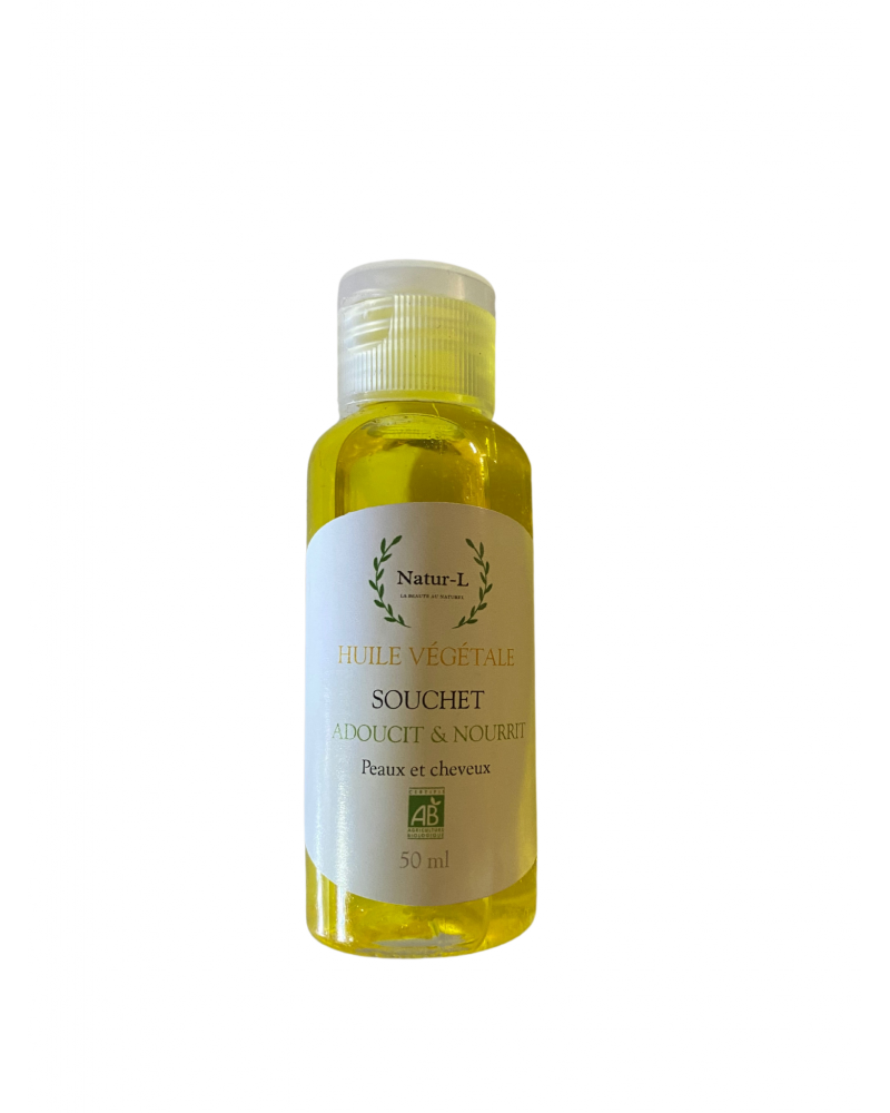 Très nourissante, l'huile de Souchet protège la peau de la deshydratation. Elle freine l'apparition des signes de l'age en ameliorant l'élasticité de la peau.